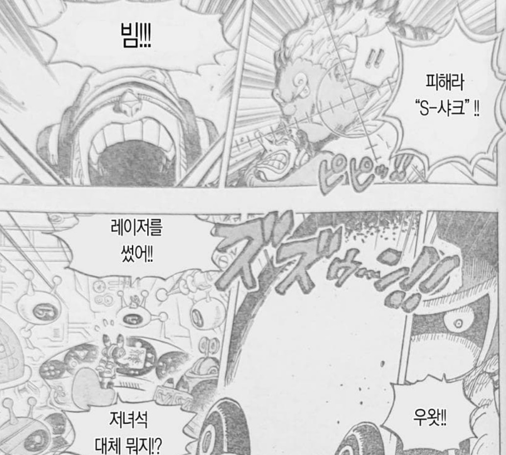 설마.. 세뇨르핑크의 기술을 육지에서 사용하는.. 징베 이거 원래징베보다 더 쌜지도 모르겠는데..