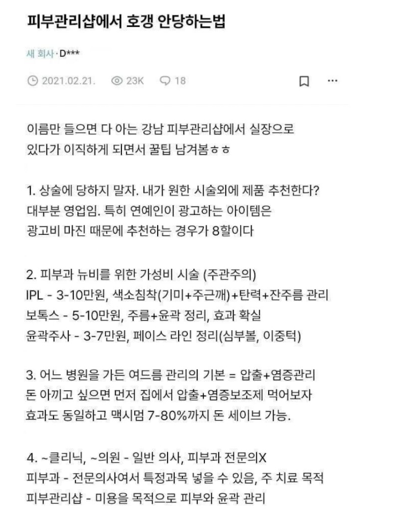 피부관리샵에서 호갱 탈출법