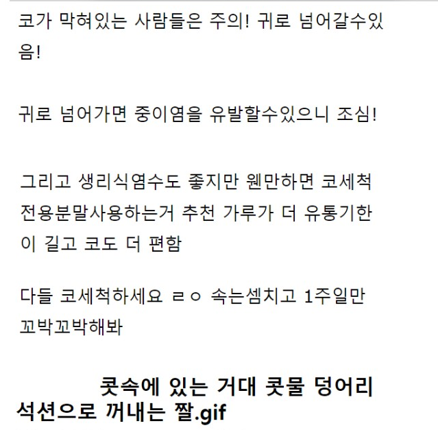 콧속 거대 콧물 제거하는 짤